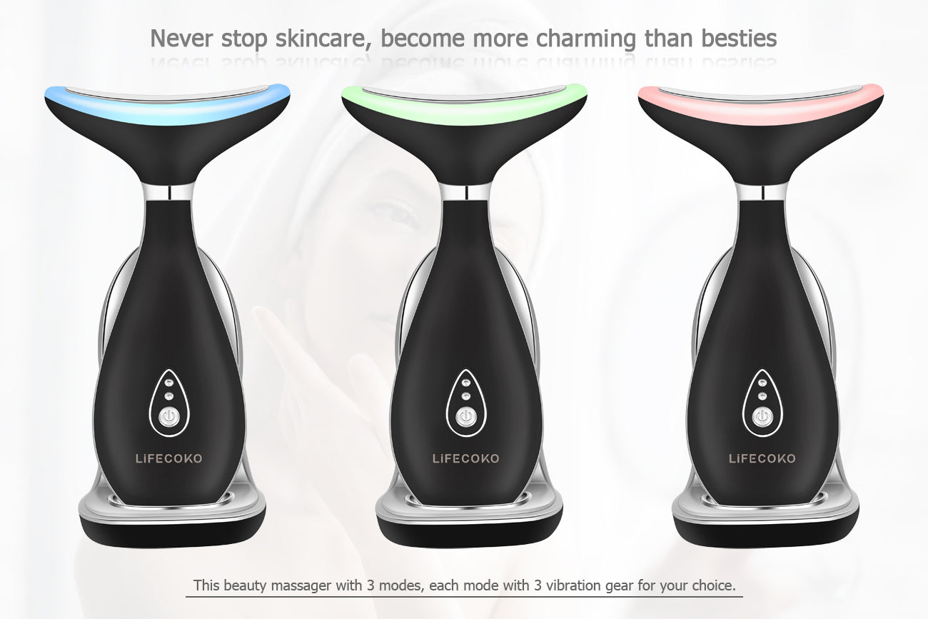 【Three Massage Modes】-- Blue/Green/Red light therapy for face and neck, green and red light with 42-45℃ can help skincare lotion to be absorbed into the skin, increases cell metabolism, accelerates blood circulation, and restores skin firmness.