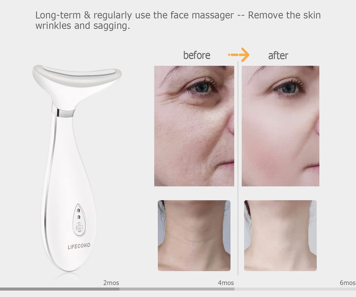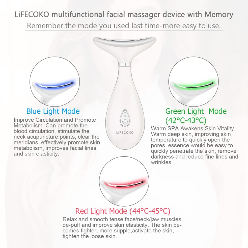 【Three Massage Modes】-- Blue/Green/Red light therapy for face and neck, green and red light with 42-45℃ can help skincare lotion to be absorbed into the skin, increases cell metabolism, accelerates blood circulation, and restores skin firmness.