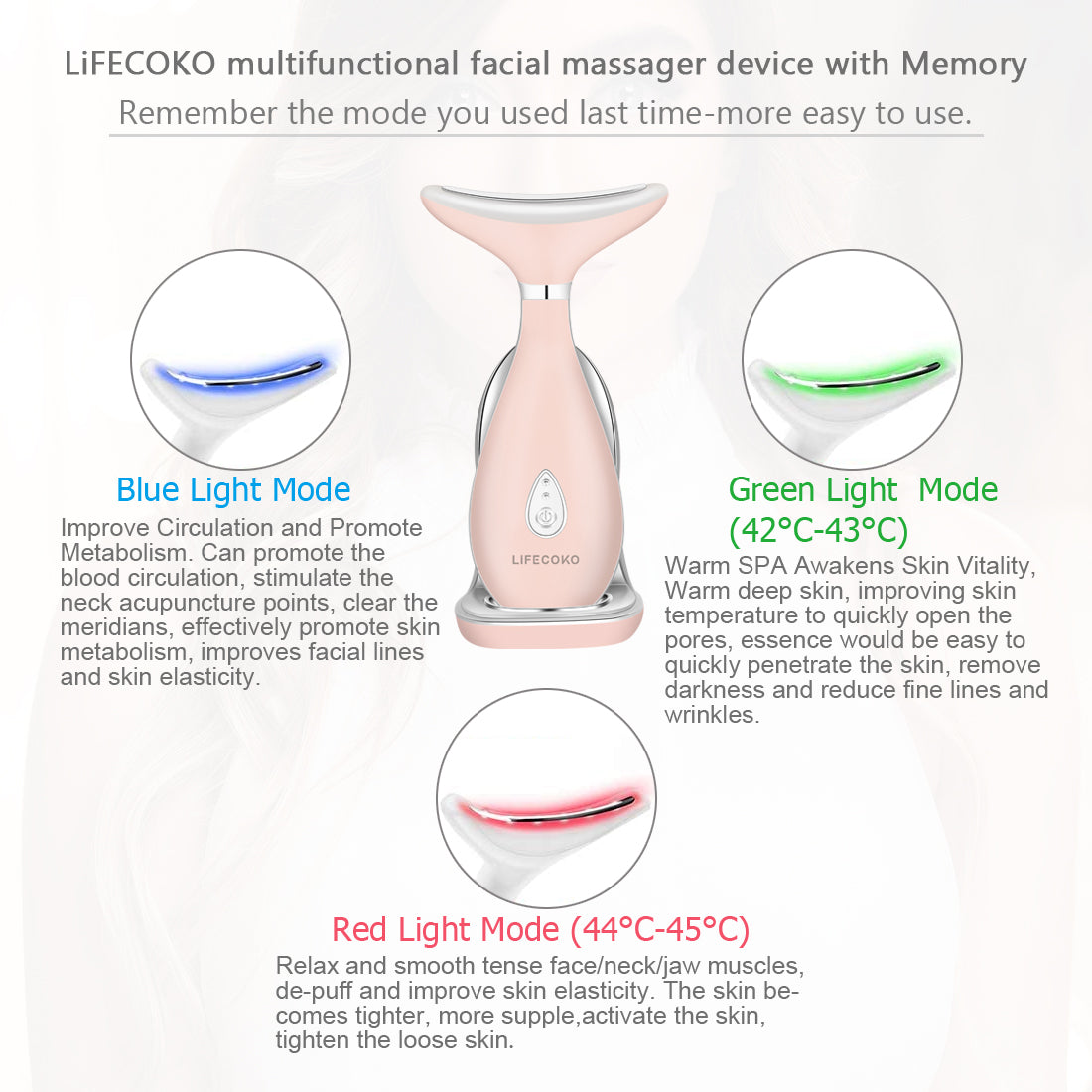 【Three Massage Modes】-- Blue/Green/Red light therapy for face and neck, green and red light with 42-45℃ can help skincare lotion to be absorbed into the skin, increases cell metabolism, accelerates blood circulation, and restores skin firmness.